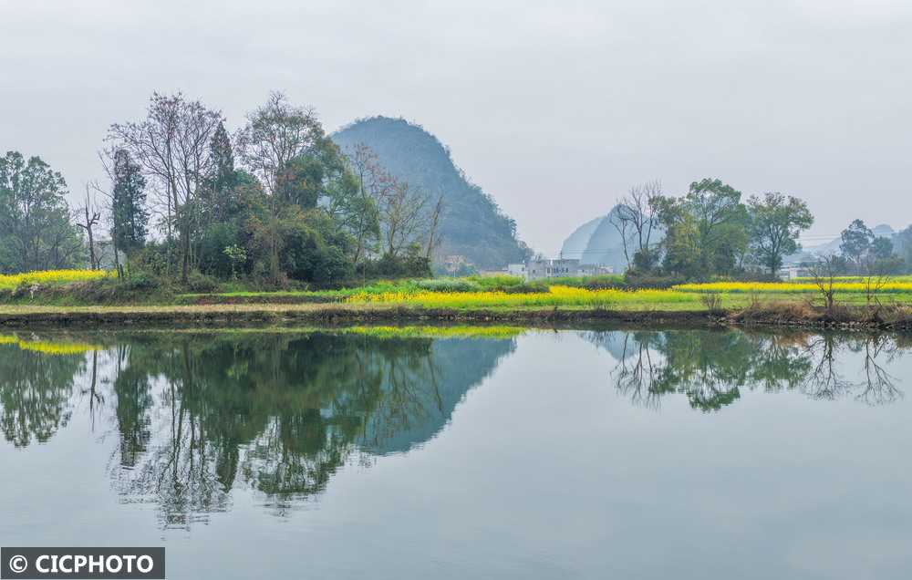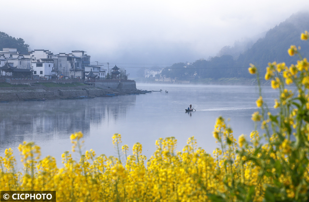 ↑2026年3月11日在安徽省黄山市歙县深渡镇漳潭村新安江畔拍摄的晨景。CICPHOTO/施亚磊 摄