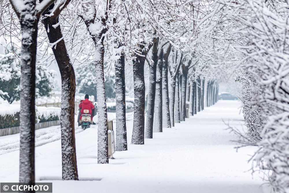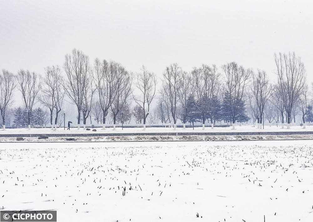 ↑2026年3月2日在河南省安阳市安阳县站南正途旁拍摄的雪景。CICPHOTO/王建安 摄