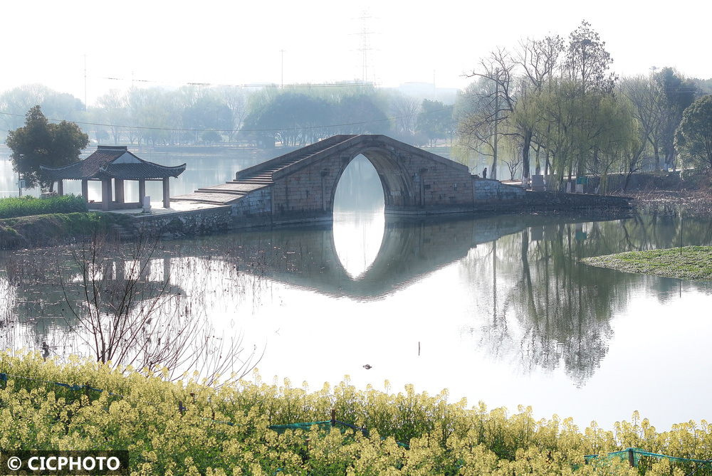 ↑2026年3月10日在浙江省湖州市长兴县太湖街谈三河湾公园拍摄的风光。CICPHOTO/沈云蕾 摄