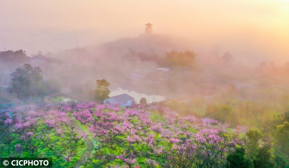 ↑2026年3月4日在四川省广安市广安区龙安乡大云山拍摄的晨景。(无东谈主机相片)CICPHOTO/张晓 摄