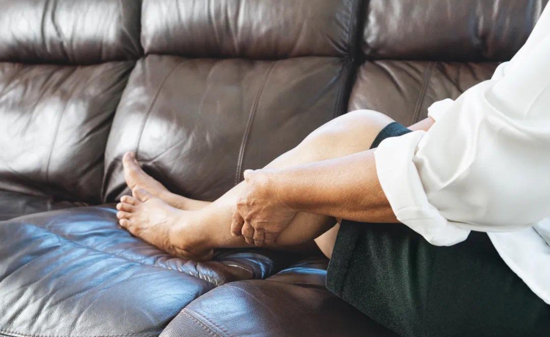 与抽筋的剧痛不同,这是捏续的钝痛、麻痹、发凉,警惕下肢动脉硬化封闭症或深静脉血栓。